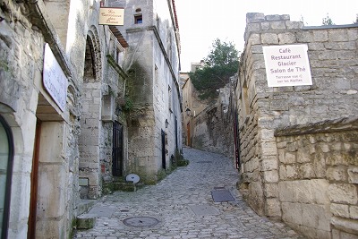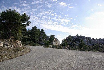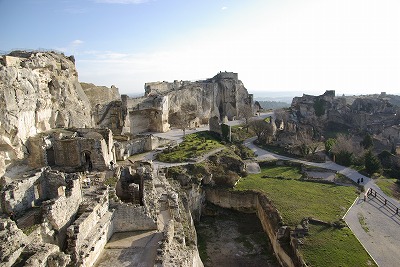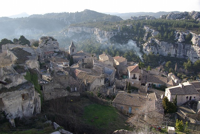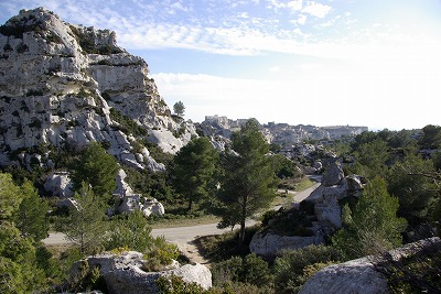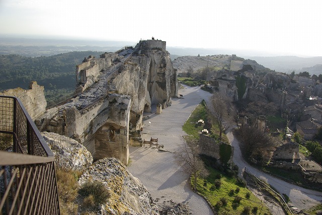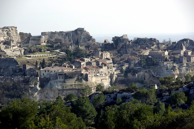 北から南に向かう山道を通ってレ・ボー・ドゥ・プロヴァンスに向かうと、岩山が次々に現れ、不意に視界が開けたところで、城砦都市が姿を現す。