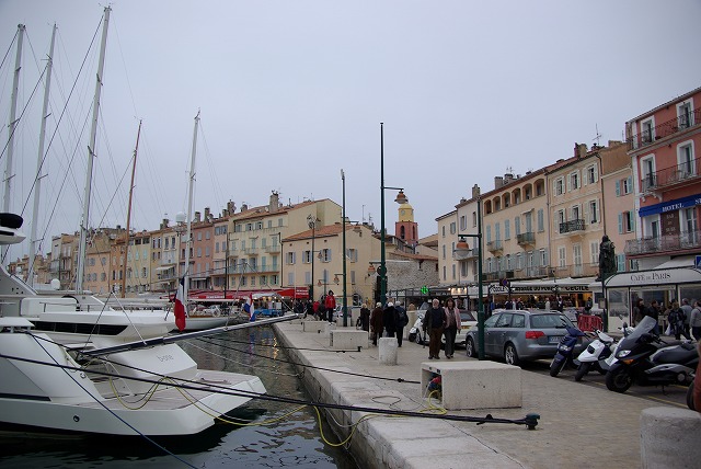 サン・トロペはコート・ダジュールの中でも、モナコとともに、とりわけ金持ちが多く集まるところとして有名である。おそらく、陸からのアクセスは悪いが、海からは簡単に来られる地理的理由によるのだろう。たしかに、港にはレーダーを何基も装備した家一軒ほどもありそうな高級クルーザーが並んでいる。また、港に通ずる通りには高級ブランド店が並んでいる。しかし、同じ港のすぐ反対側には、昔のひなびた漁村の面影が今も残っている。(下の2枚の写真)