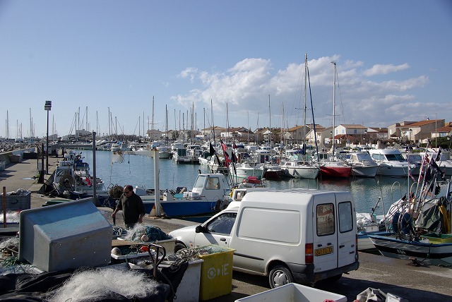 サント・マリー・ドゥ・ラ・メールの港。漁船とレジャーボートやヨットが混在している。 (2010年)