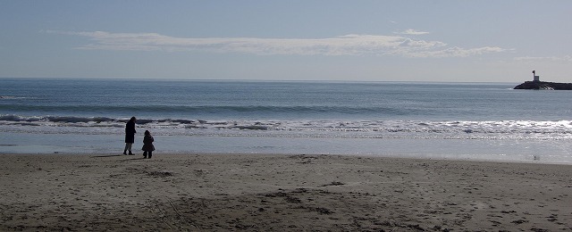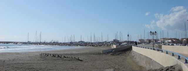 港の脇は砂浜になっていて、地中海の穏やかな波が打ち寄せていた。